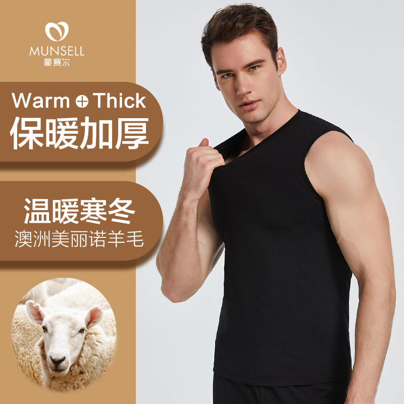 新款 内衣秋衣冬季 内穿防寒 羊毛保暖背心5518薄款 蒙赛尔男士