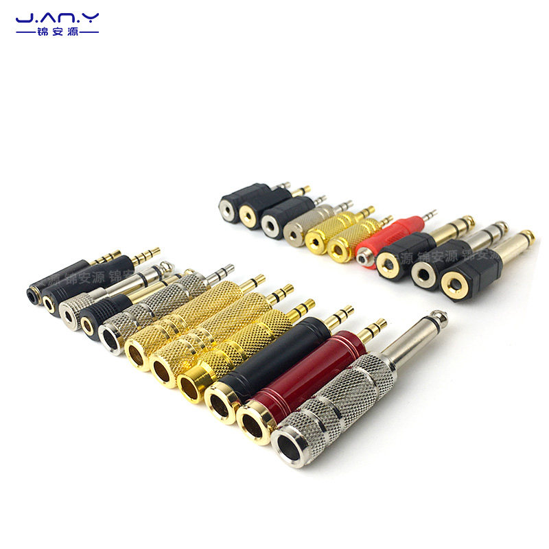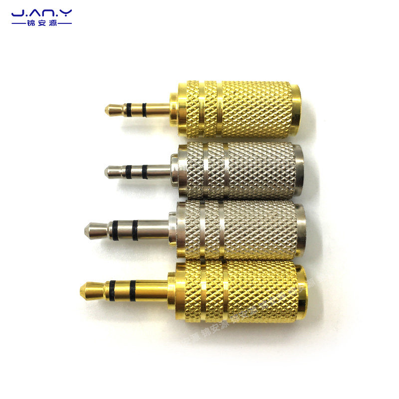 立体单双声道大小二 6.35mm音频莲花转换接头 三芯 3.5 铜镀金2.5