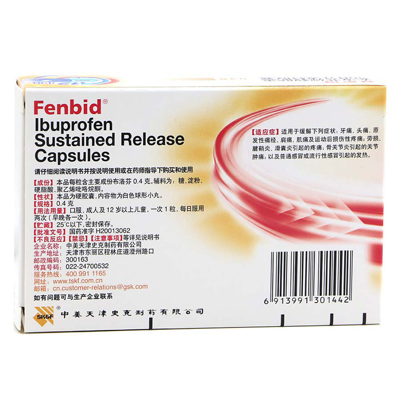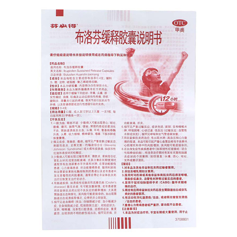 24粒 布洛芬缓释胶囊0.4g 盒牙痛头痛原发性痛经 芬必得 中美史克