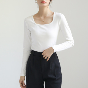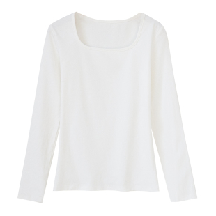 长袖 女内搭低领修身 t恤u领上衣可外穿 方领白色打底衫 2026春秋新款
