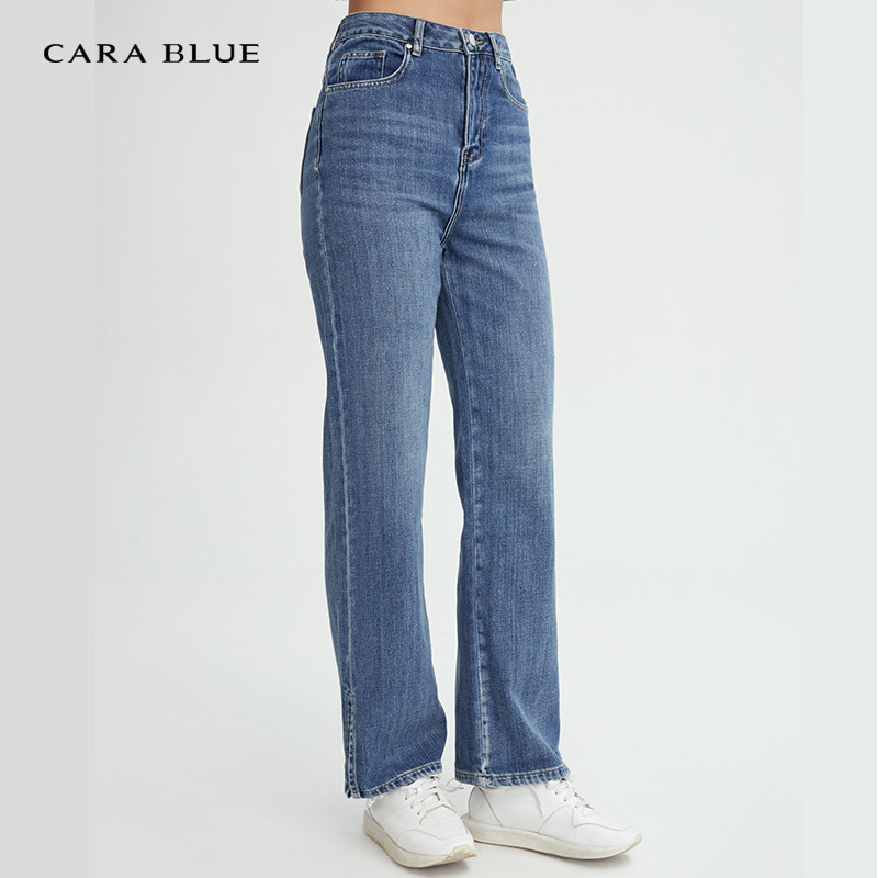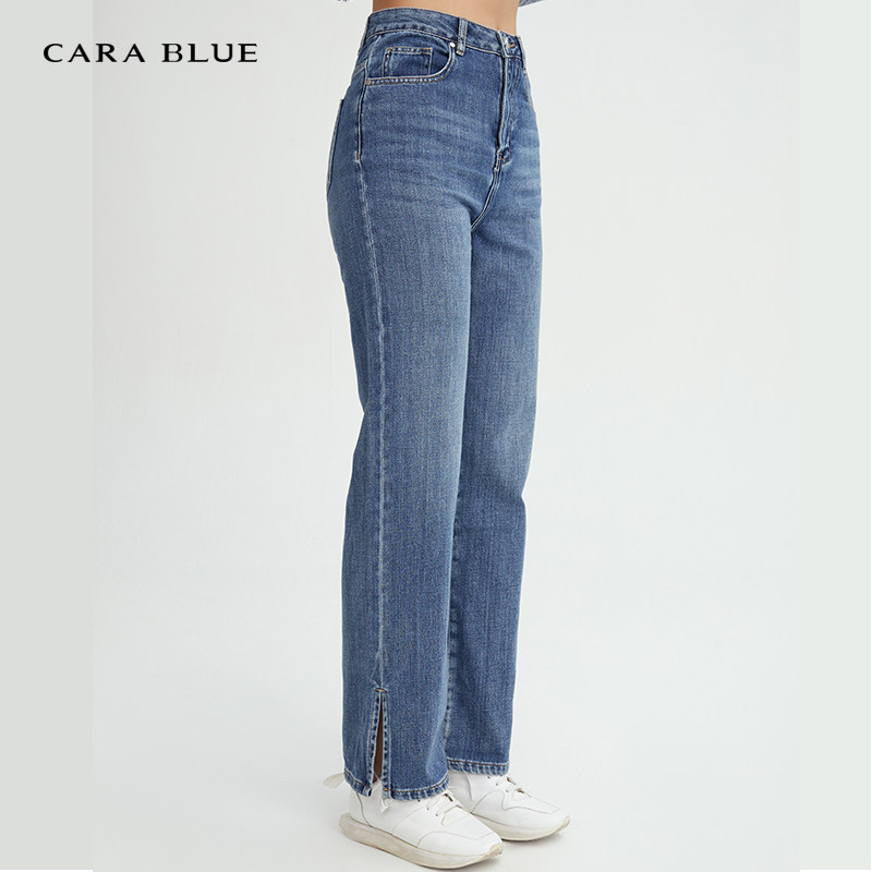 KC223MJP0003 休闲百搭高腰直筒水洗牛仔裤 喀啦CARABLUE女装 时尚