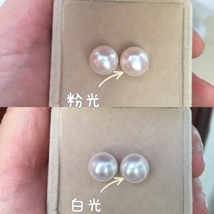 京润珍珠云逸淡水有核珍珠耳钉10 11mm圆形大颗珍珠耳饰生日礼物P