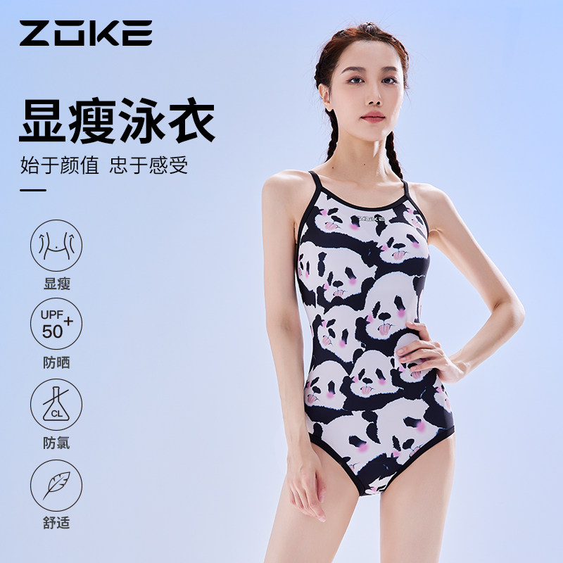 洲克小熊猫连体泳衣女遮肚女款 zoke三角竞速训练运动健身女游泳衣