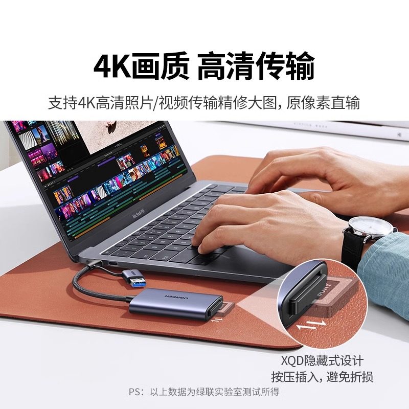 绿联USB3.0高速多功能XQD读卡器存储卡转化typec电脑otg手机两用适用于单反相机摄像机
