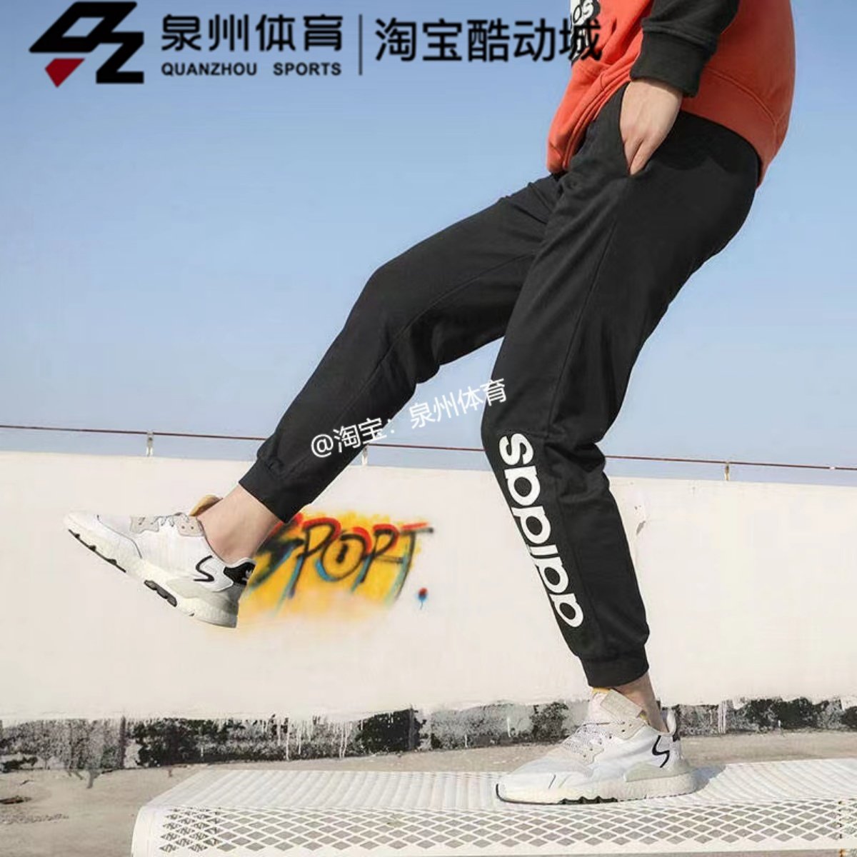 Adidas GP4896 阿迪达斯Neo男子休闲跑步训练运动针织束脚宽松长裤