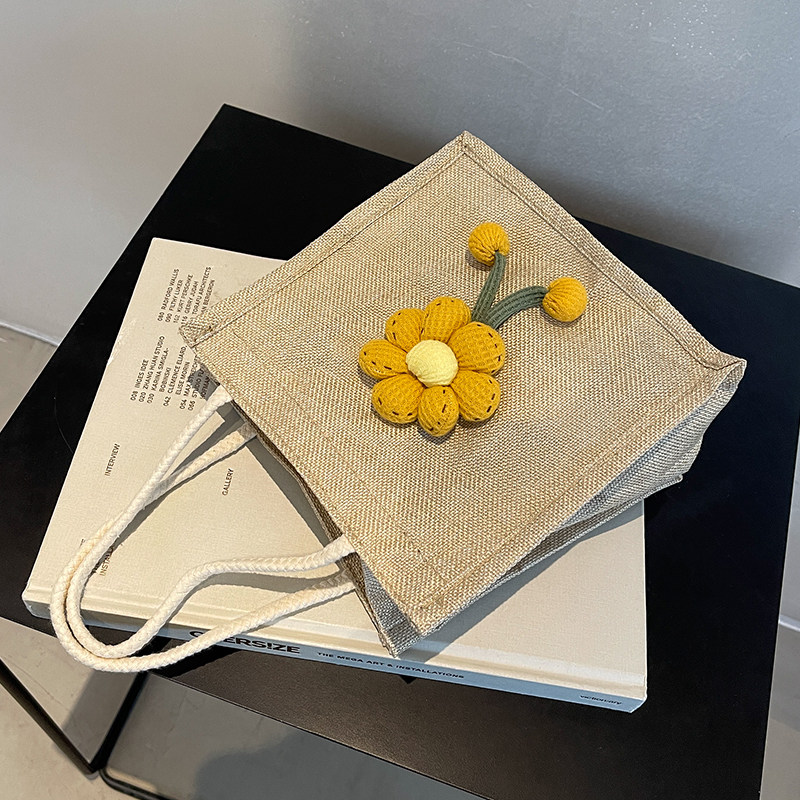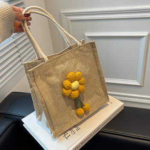 外出手提袋子ins小挎包女 时尚 今年流行爆款 亚麻饭盒包包2025新款