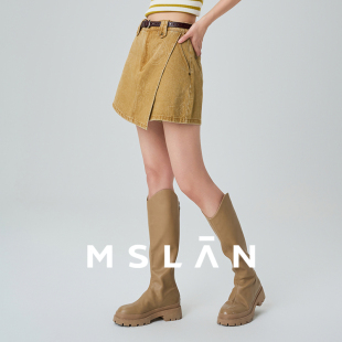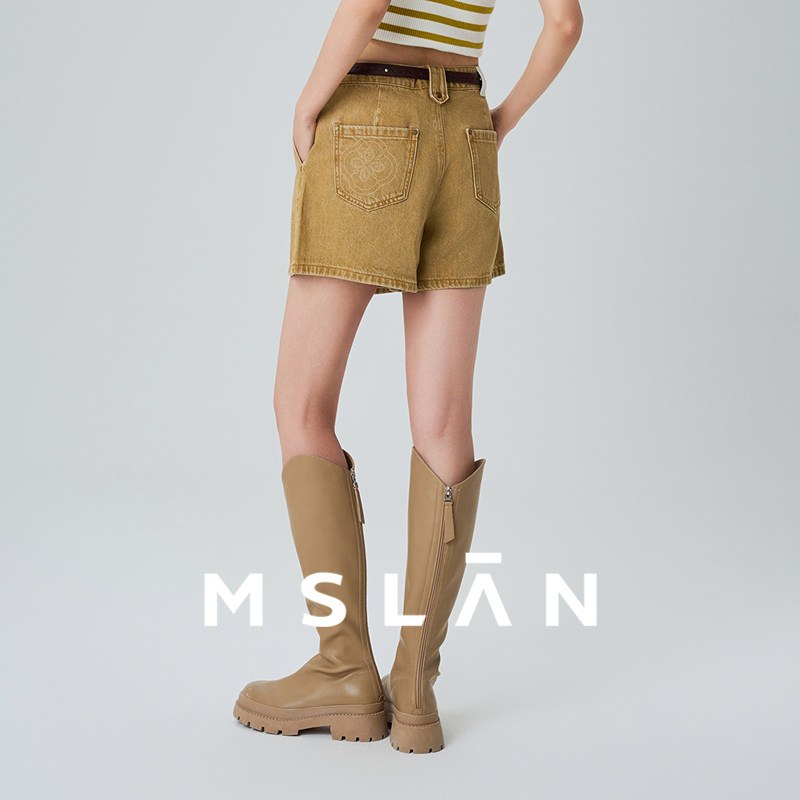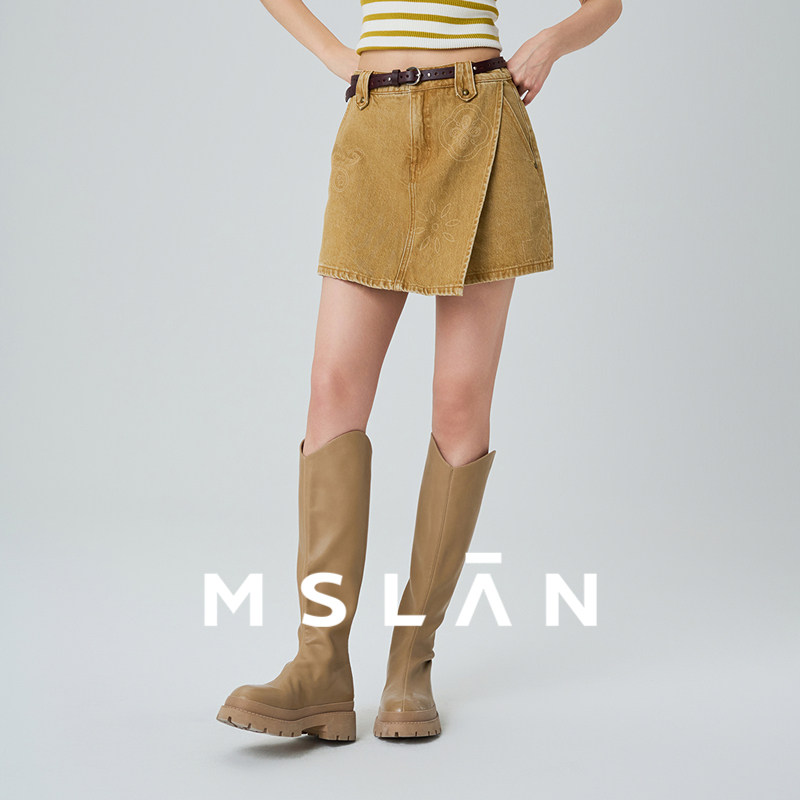 裤 复古棕色印花牛仔短裤 裙MFCM6901 美式 「清仓2折」MSLAN夏季