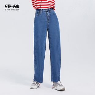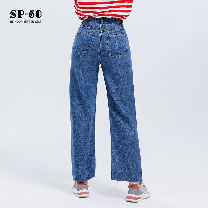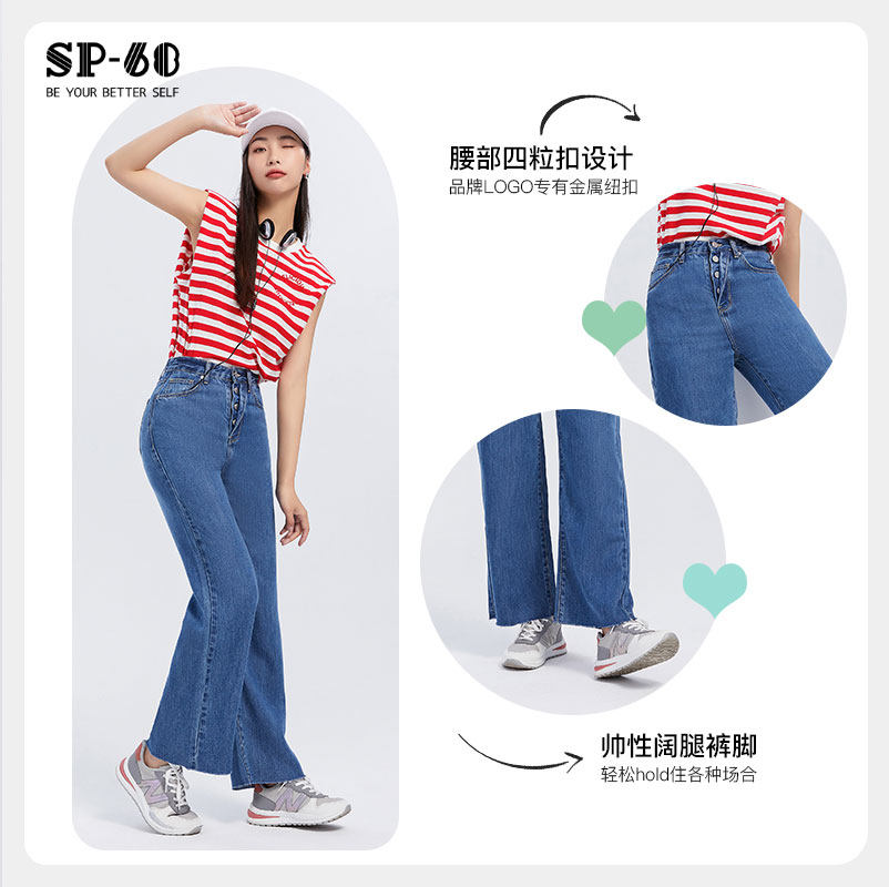 女阔腿裤 高腰蓝色直筒宽松显瘦长裤 夏季 2024年新款 薄款 sp68牛仔裤