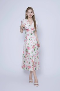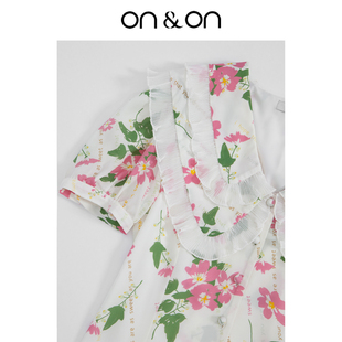 法式 新款 浪漫甜美粉色收腰显瘦印花连衣裙 安乃安2025夏季 ON&ON