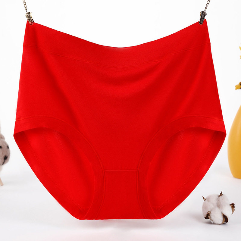 200斤妈妈红短裤 女高腰莫代尔全棉加大码 竹纤维纯棉三角内裤 3条装