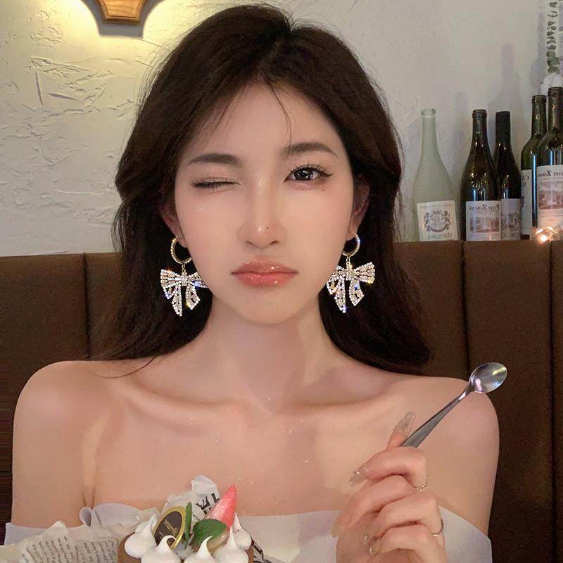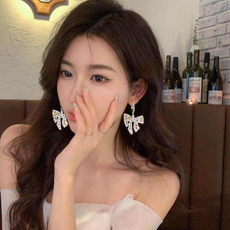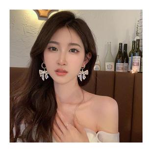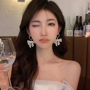 珐琅棋盘格蝴蝶结锆石耳环秋冬女2025新款 高级感耳钉气质耳饰 爆款