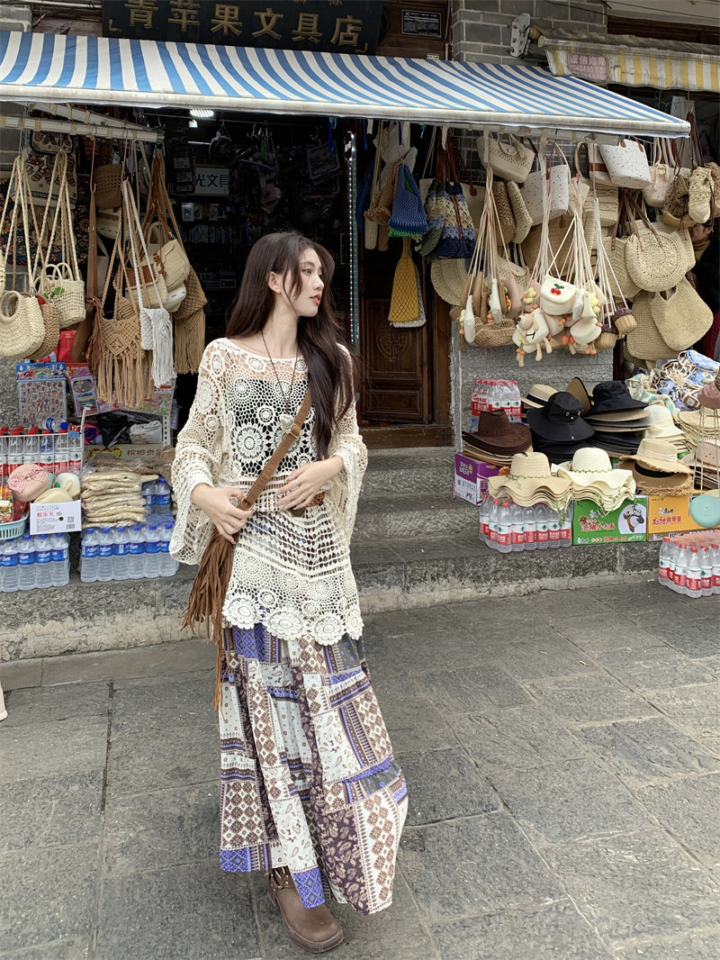 半身裙子套装 2026年春夏新款 云南新疆海边旅游拍照波西米亚针织衫