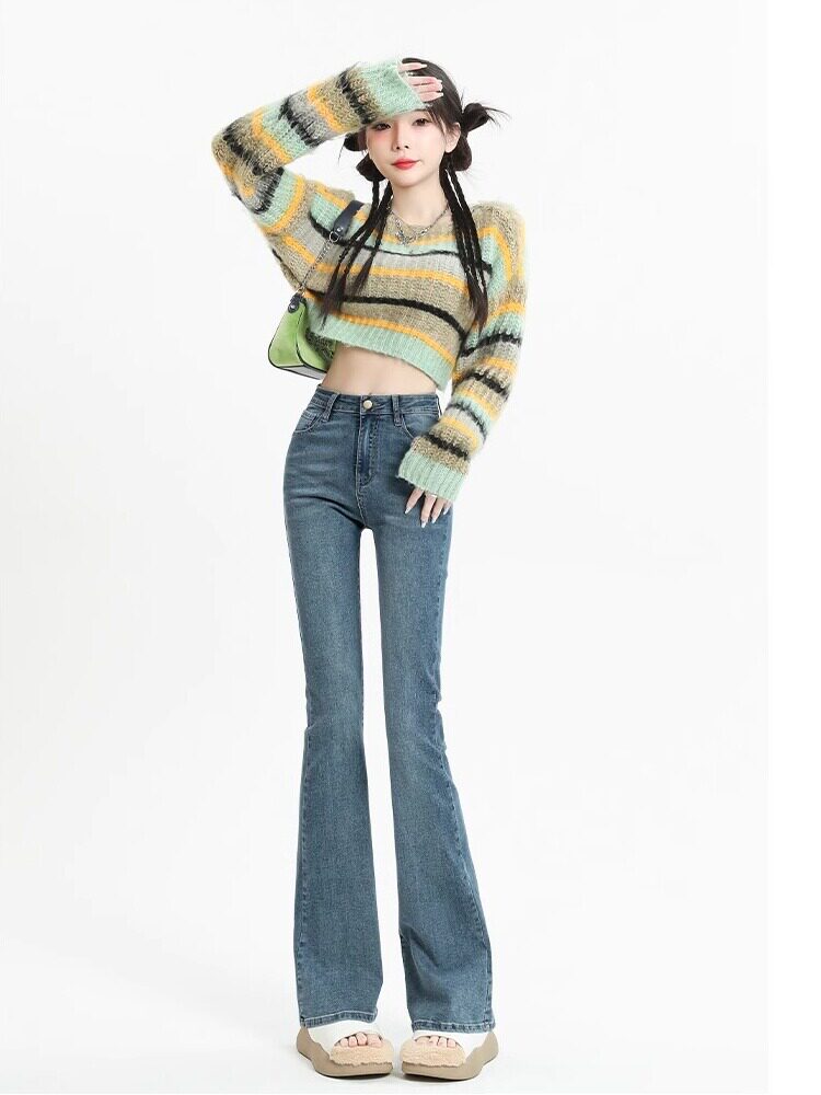 子女春秋装 微喇牛仔裤 高腰显瘦145小个子喇叭裤 新款 女2026年春季
