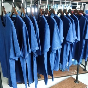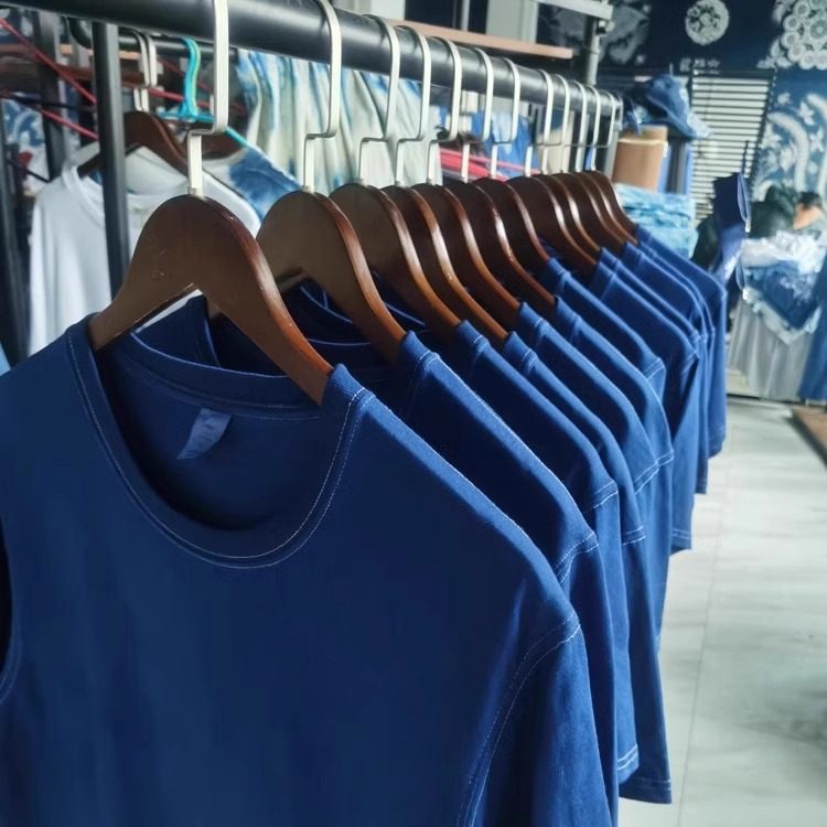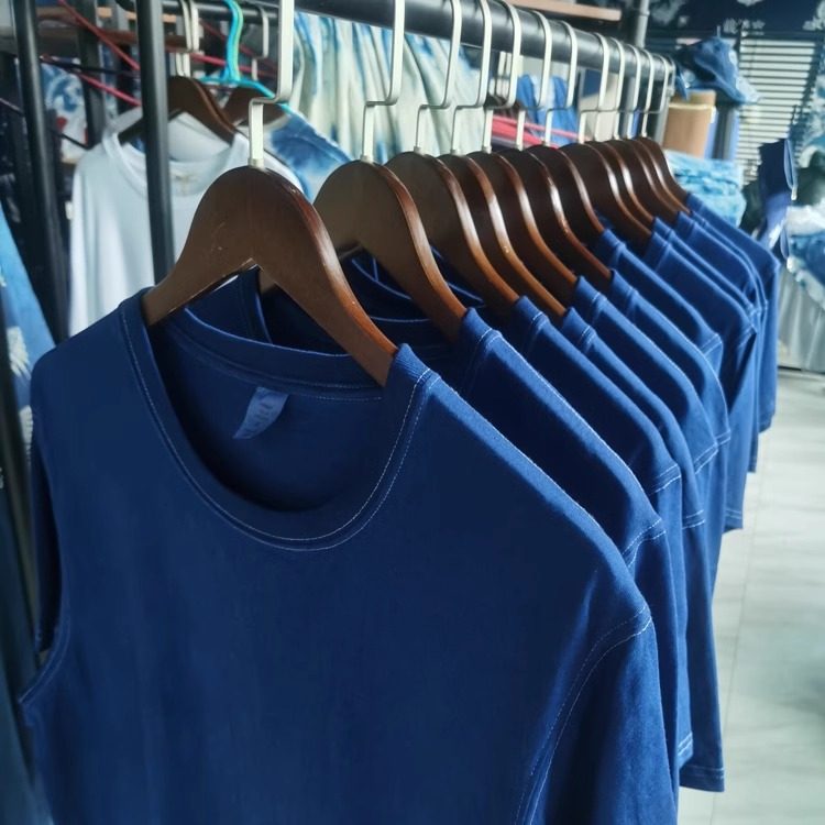 靛蓝染T恤植物染草木染非遗工艺板蓝根染色纯棉手工染色纯色 包邮