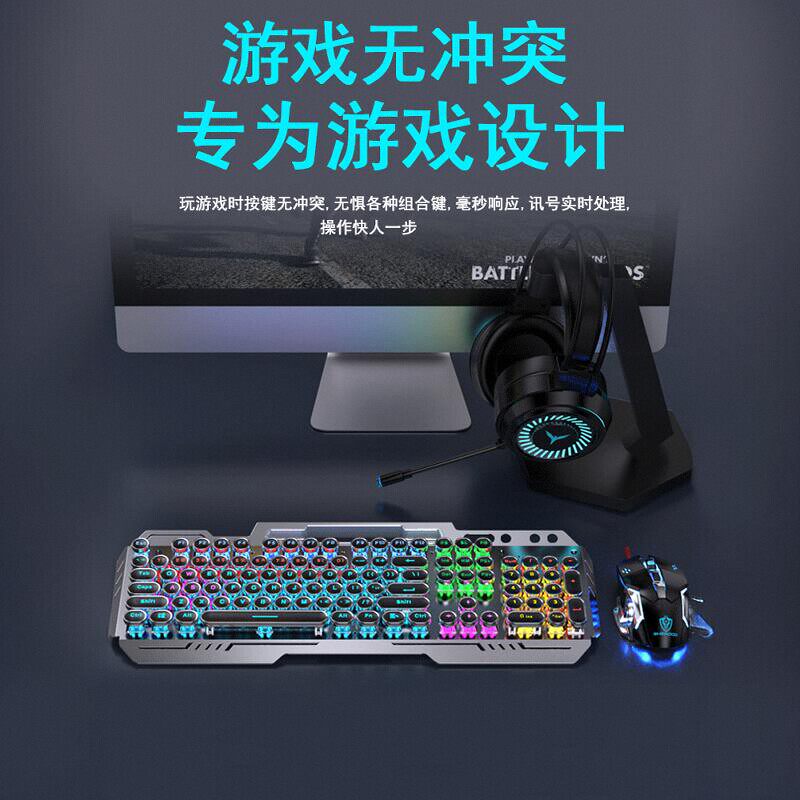 有线青轴电脑黑神话悟空键鼠耳机三件套高颜值复古朋克键盘鼠标