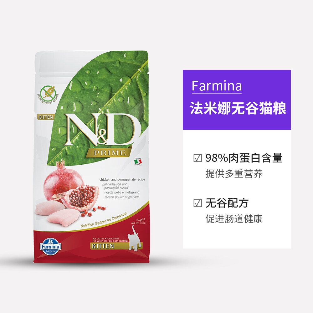 farmina法米娜成猫粮1.5kg鸡肉石榴鲱鱼无谷高肉蛋白临期 自营