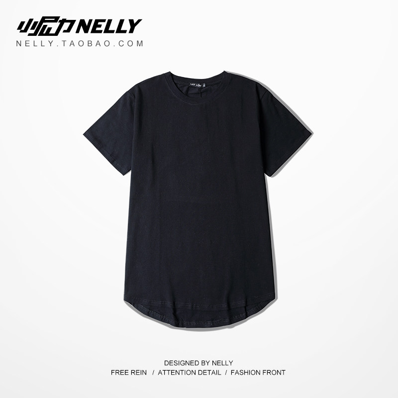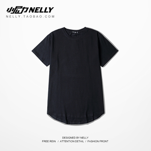 TEE 短袖 男女T恤 半袖 暗黑体恤 高街纯色打底衫 中袖 圆弧下摆加长款