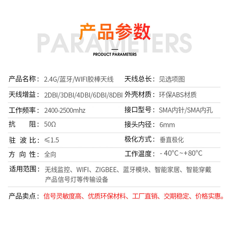 2.4G 5.8G双频高增益wifi6路由器无线网卡电脑机箱小辣椒胶棒天线