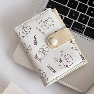 可爱小熊钱包女韩版 钱夹卡包学生零钱包 小清新ins风印花三折短款