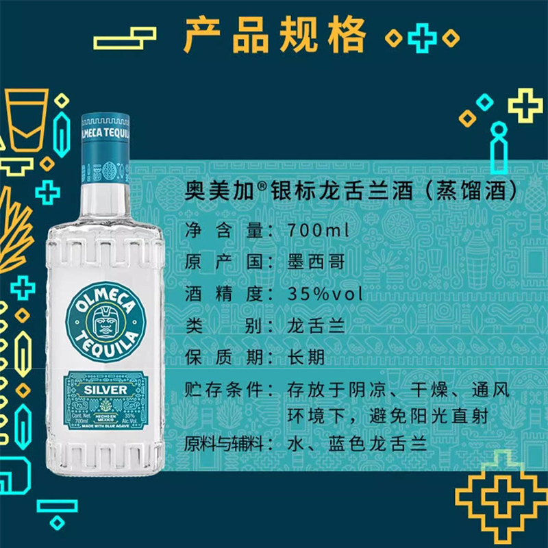 鸡尾酒基酒 墨西哥进口奥美加银标龙舌兰酒700ml洋酒烈酒 自营