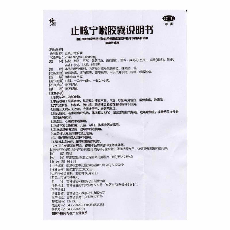 22粒风寒咳嗽呕吐咽喉肿痛镇咳祛痰散寒 0.25g 修正 止咳宁嗽胶囊