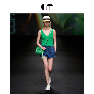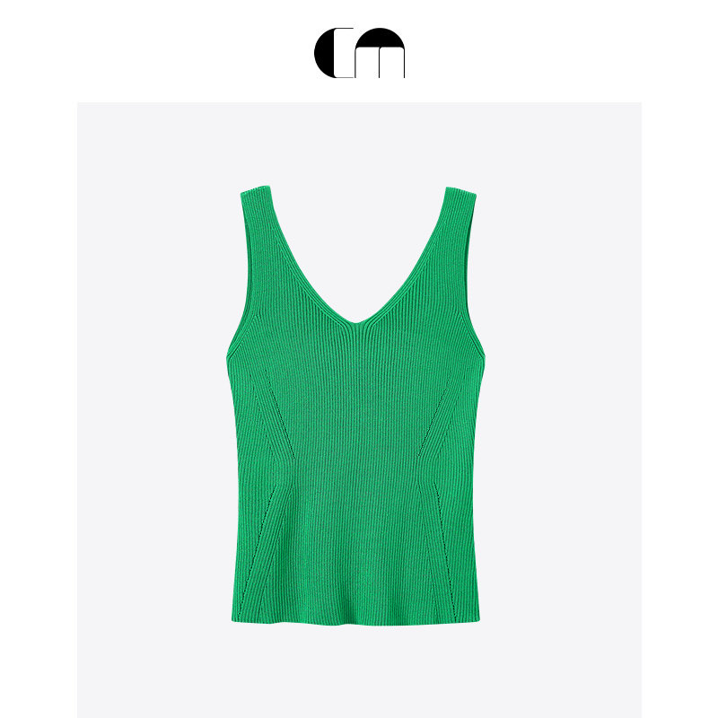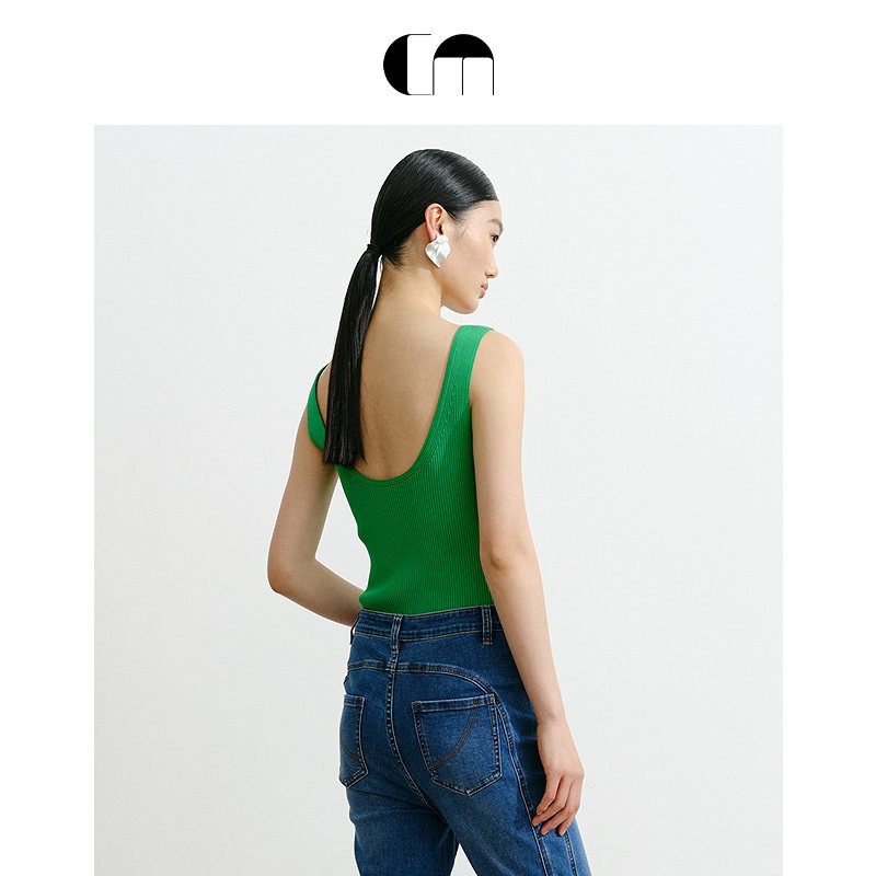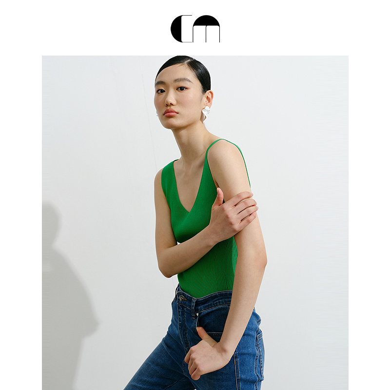 MOI吕燕设计师早春高弹V领修身 COMME 背心女 秀场同款