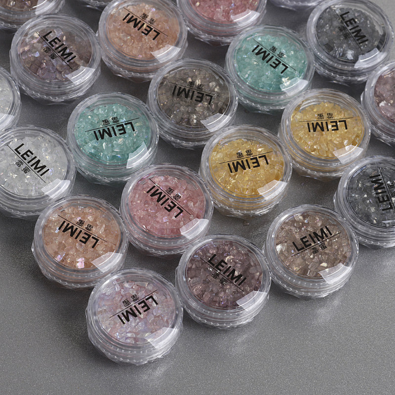美甲水晶碎石饰品不规则冰透偏光炫彩白色粉色晶石玻璃指甲饰品贴
