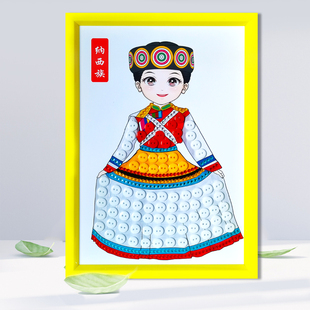 民族团结亲子手工diy纽扣贴画材料包少数民族社区宣传环创装 饰画