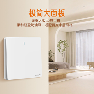 德力西玻璃镜面大板86型五孔双控电源家用开关16A插座面板881白