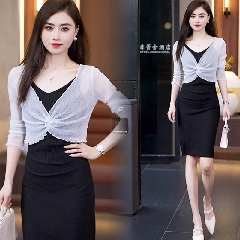 设计感小披肩夏季 洋气扭结罩衫 吊带裙子 薄款 小外搭短袖 网纱长袖