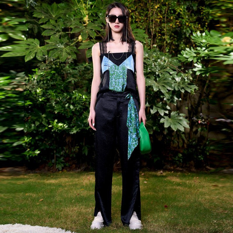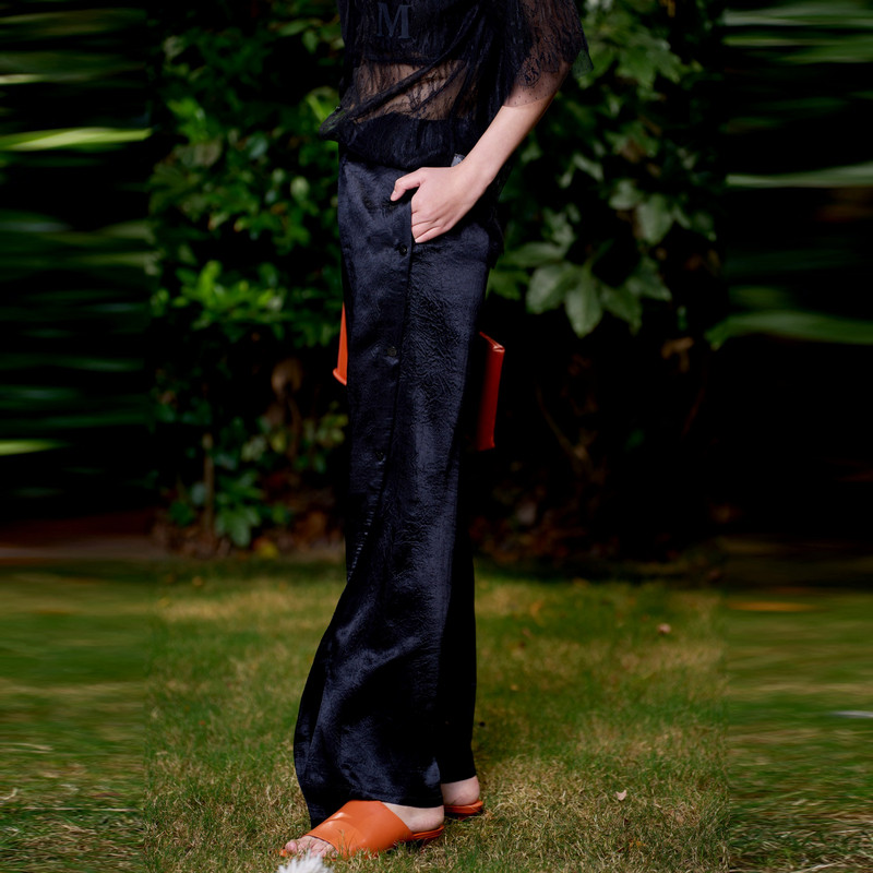 TI联名款 新款 黑色设计感醋酸长裤 尤缇2024夏季 女百搭垂坠休闲裤