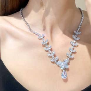 2024新款 宴会礼服饰品演出生日婚纱配饰 简约轻奢锆石新娘项链套装