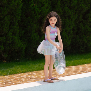韩版 布丁哈鲁夏装 女童装 2026新款 休闲彩色美人鱼连体泳衣 儿童夏季