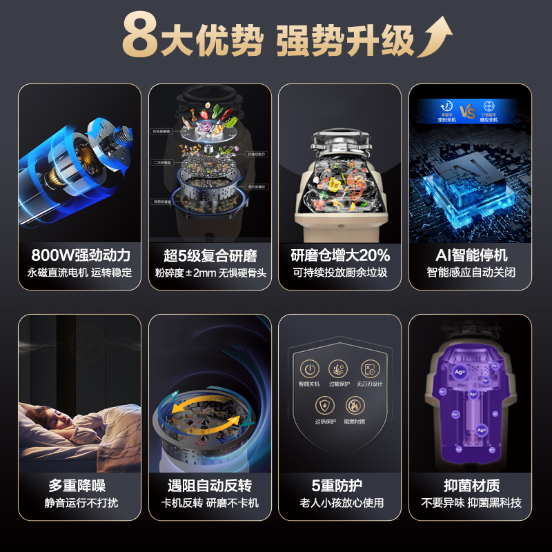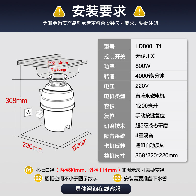 海尔智能厨房食物垃圾处理器家用水槽下水道厨余研磨粉碎机LD800