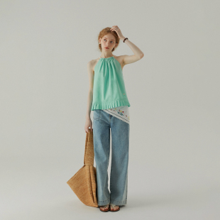 LLANO压褶抽绳吊带薄荷曼波复古法式 背心连衣裙上衣内搭外穿女夏