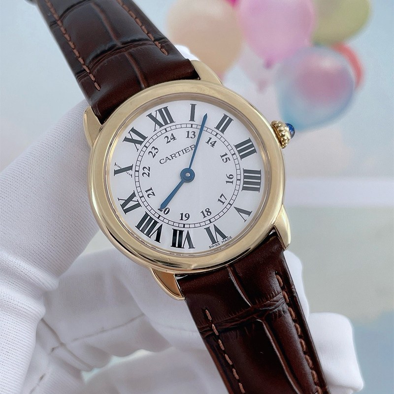 卡地亚伦敦29.5mm皮带18K黄金98新正品 石英女表W6700355公价41500