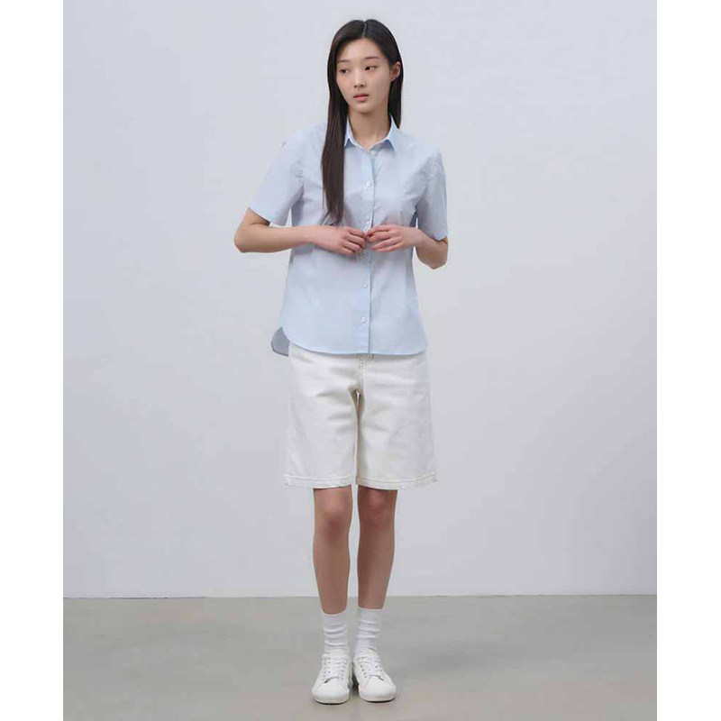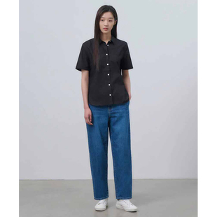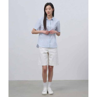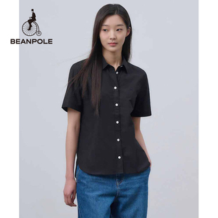 衬衫 BEANPOLE滨波 女士纯棉素色美拉蓝休闲气质单排扣度假风短袖