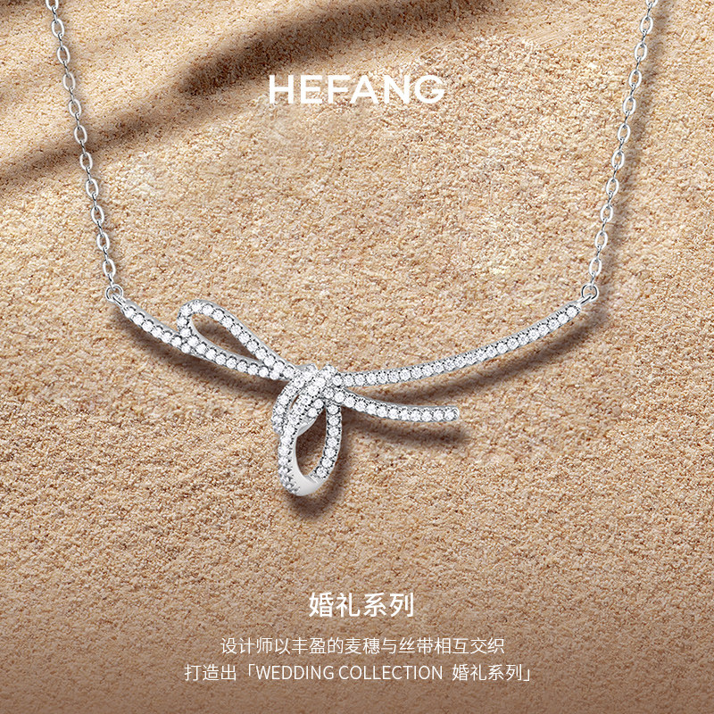 HEFANG何方丝带结锁骨链蝴蝶结项链轻奢高级配饰女生日礼物