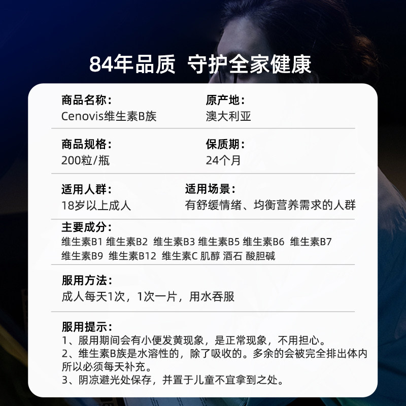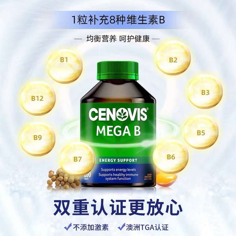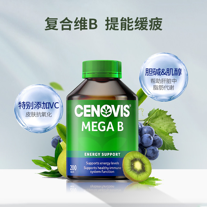 Cenovis维生素b族复合片熬夜缓疲肌醇缓释片男女维b200片 自营