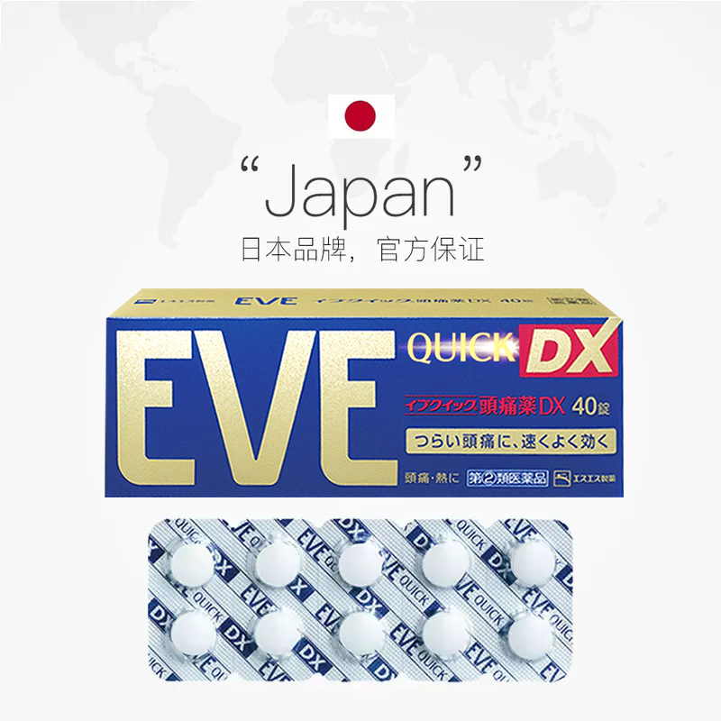 40粒 白兔牌eve止疼药头痛布洛芬感冒药止痛退烧药金色装 自营