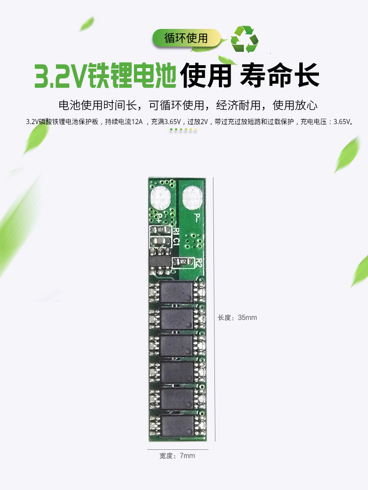 磷酸铁锂18650充电锂电池一串3.65V保护板20A聚合物保护板 大电流 FLBYD原装 1串3.2V保护板12A
