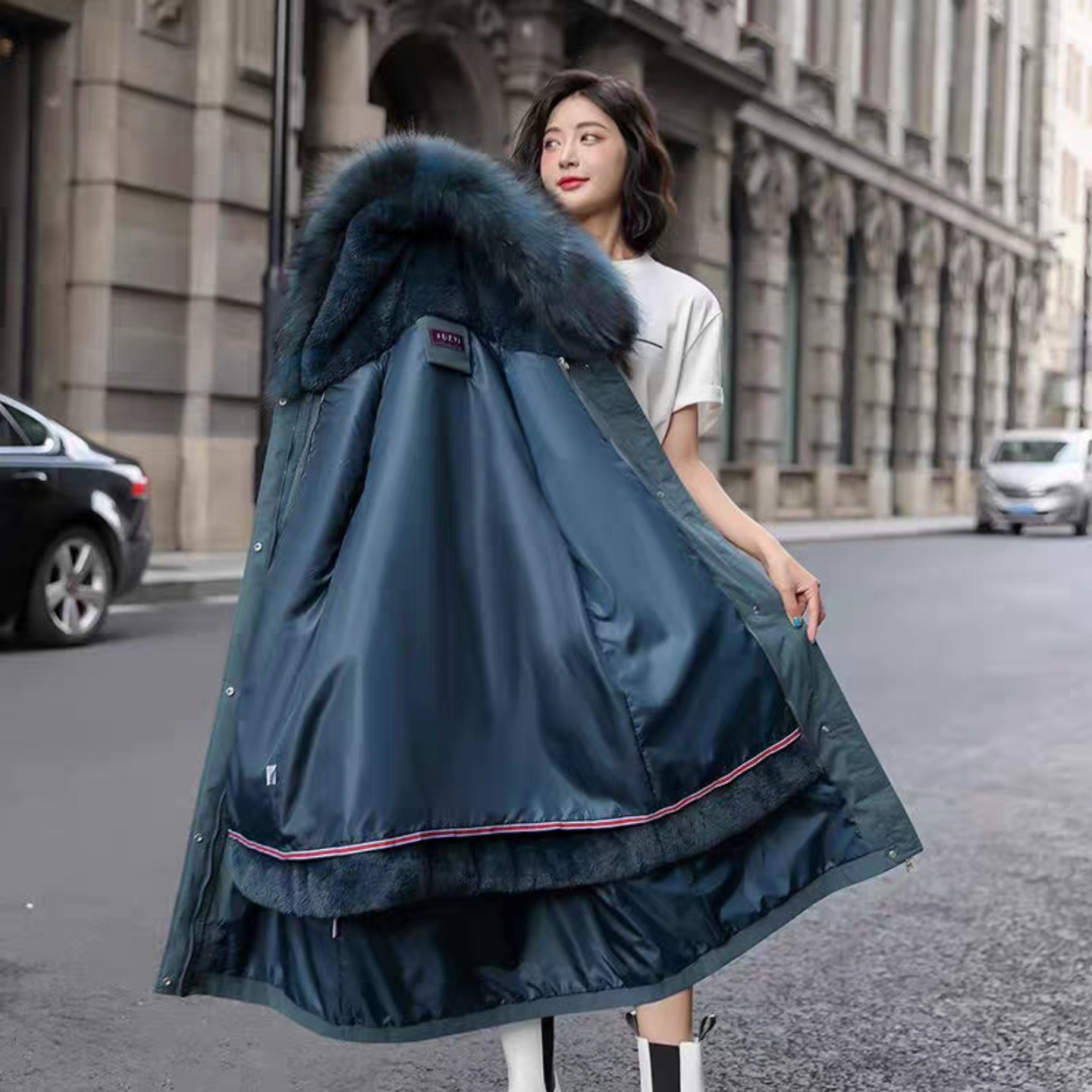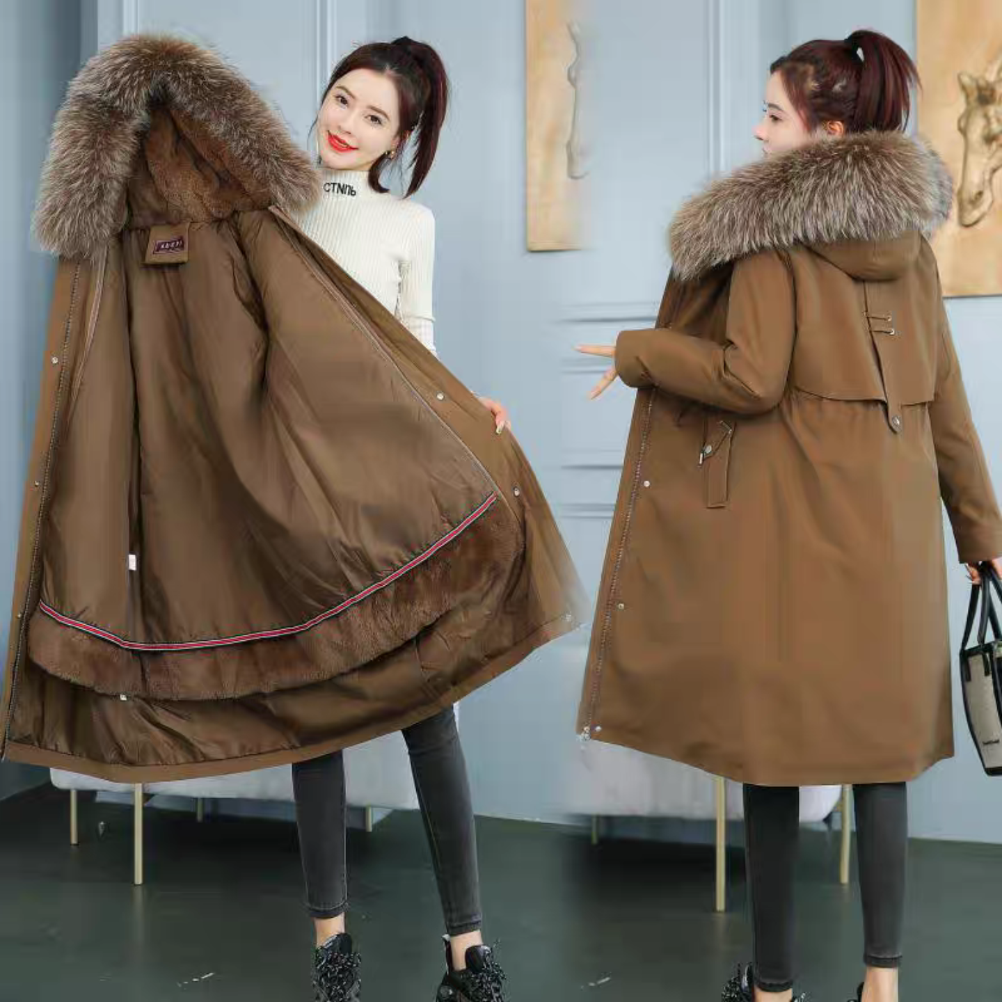 派克服 风羽绒服加厚抗寒毛领连帽中长款 RAPPEYE 复古休闲保暖工装