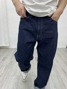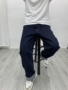 男裤 全棉水洗深蓝大码 男阿美咔叽宽松直筒休闲长裤 欧美阔腿牛仔裤