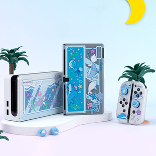 极想任天堂switch oled保护壳NS2代硬壳透明保护套鲨鲨派对joycon手柄套卡通可爱底座保护套摇杆帽防摔LITE