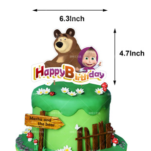 玛莎与熊卡通儿童生日派对聚会动画气球拉旗蛋糕插牌装 饰套装