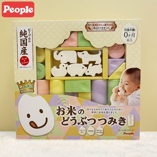 日本新款 12个月people大米积木安全无毒舔咬彩色胶可吃拼搭玩具