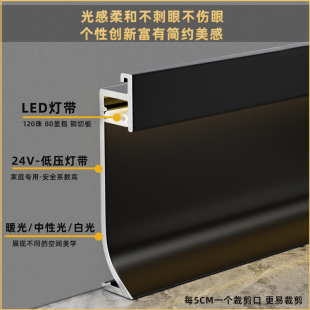发光LED灯带踢脚线铝合金地脚线灯槽不锈钢踢脚板内嵌金属贴脚线