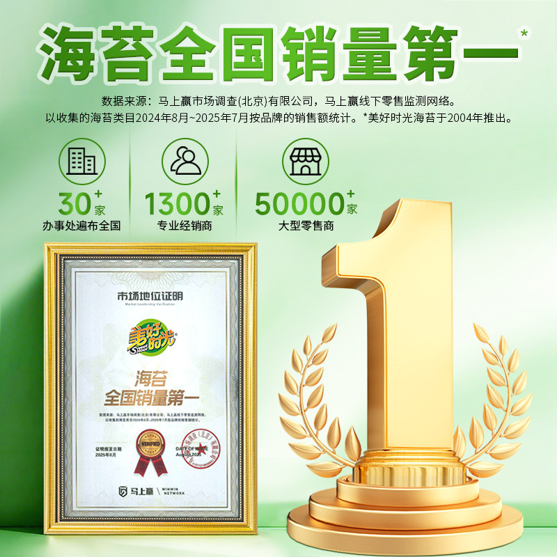 美好时光海苔原味海苔片大桶装 夹心营养解馋拌饭儿童零食即食紫菜