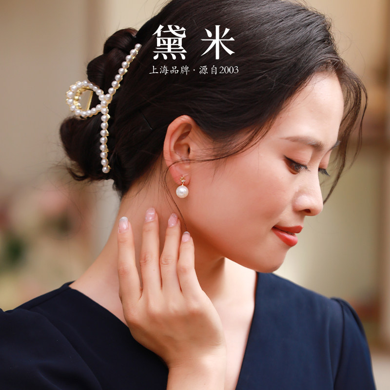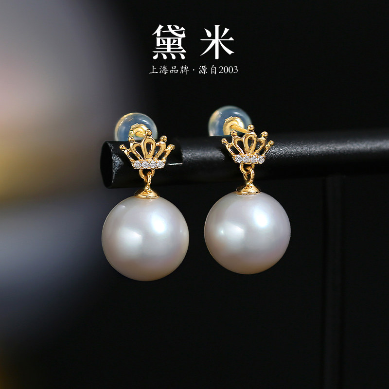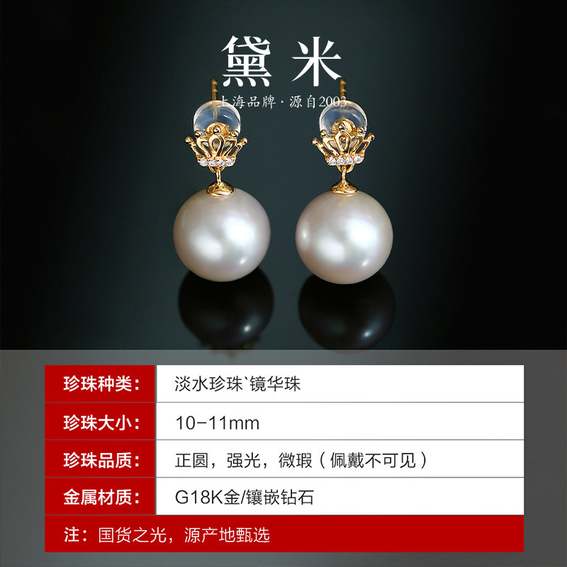 京润珍珠云逸淡水有核珍珠耳钉10 11mm圆形大颗珍珠耳饰生日礼物P