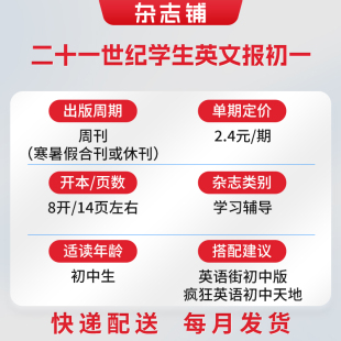 21世纪英语报提高英语阅读和口语能力 二十一世纪学生英文报初一杂志 杂志铺 1年共50期 初中英语学习辅导英语期刊 2026年5月起订